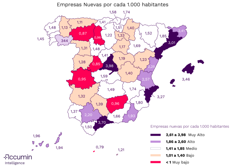 No obstante, si miramos el crecimiento proporcional, la gran sorpresa la da Álava, que dispara su tasa de creación de empresas en un espectacular +25,3%, seguida de Zamora (+23,4%) y Tarragona (+19,3%), confirmando que el dinamismo empresarial se está redistribuyendo más allá de los grandes polos tradicionales.